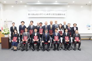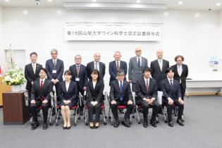 令和5年6月6日(火)、大村智記念学術館において、「第15回山梨大学ワイン科学士認定証書授与式」を挙行し、ワイン科学士14名及び準ワイン科学士7名を認定しました。