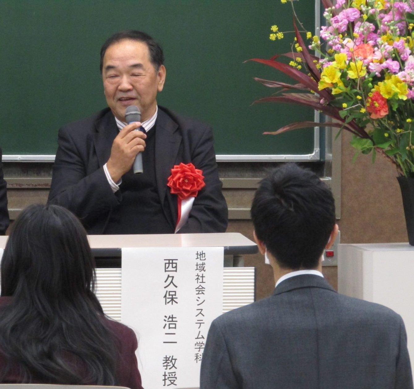 3月8日(金)、「工学域・生命環境学域 定年退職教員を送る会」を開催し、生命環境学部からは、3月31日をもって定年退職される 地域社会システム学科・西久保浩二教授とワイン科学研究センター・横森洋一教授にご出席いただきました。