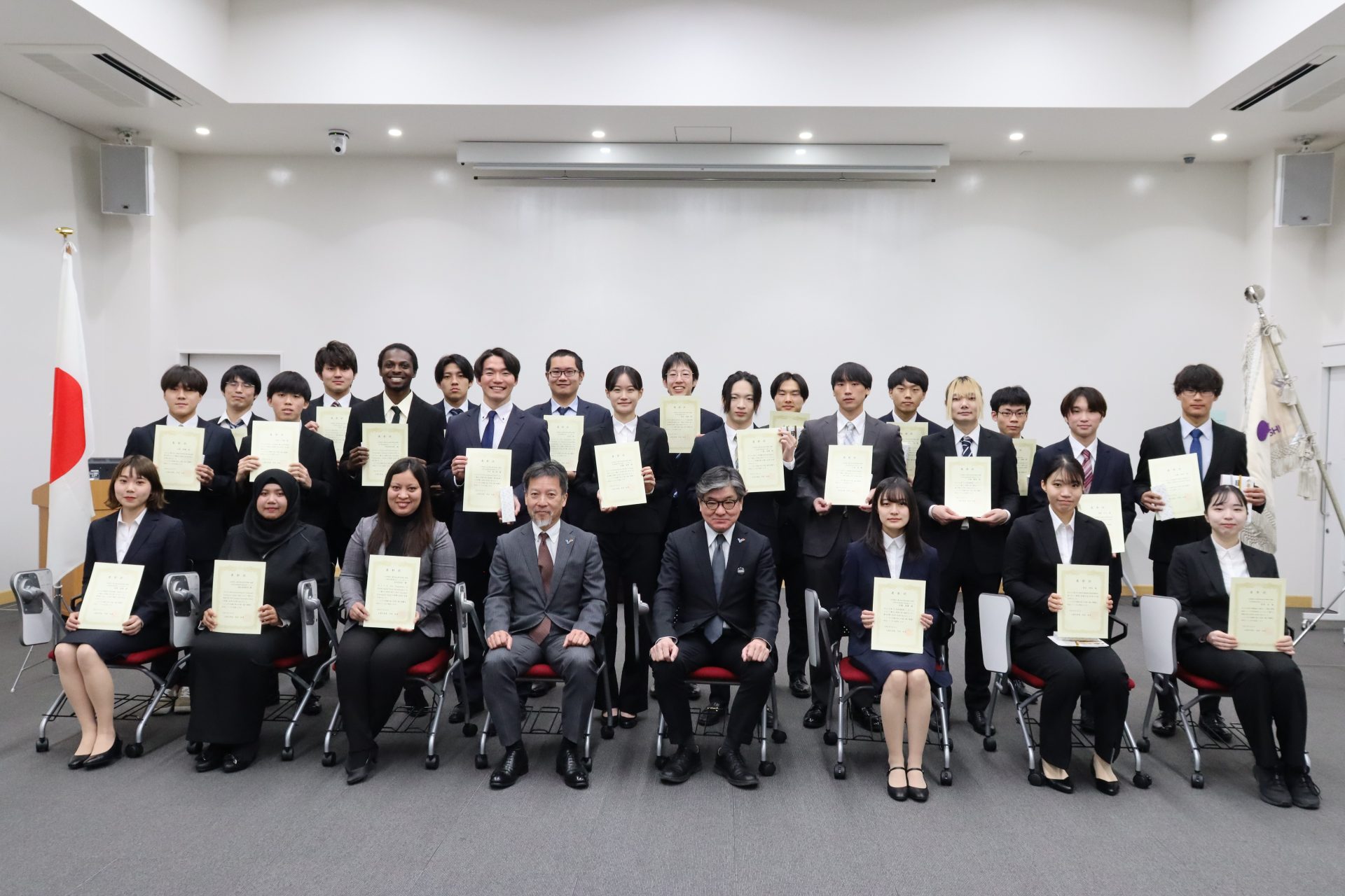 本学では、優秀な成績を収めた学生及びその行為が社会的に高く評価される等、学生の模範となりうると認められた学生を表彰しています。