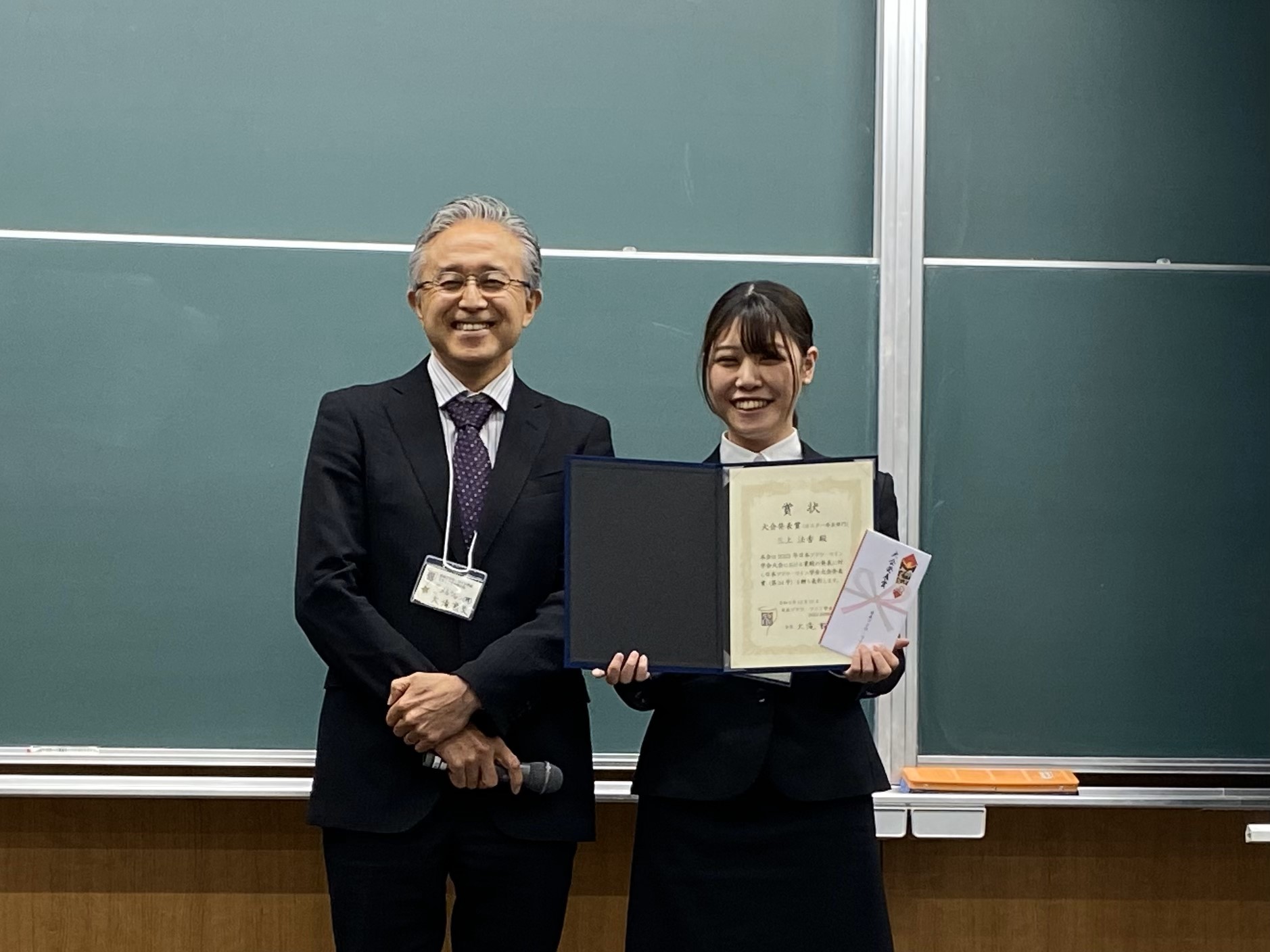 受賞者 :修士課程生命環境学専攻 食物・ワイン科学コース2年 三上法香さん(指導教員:榎真一助教)