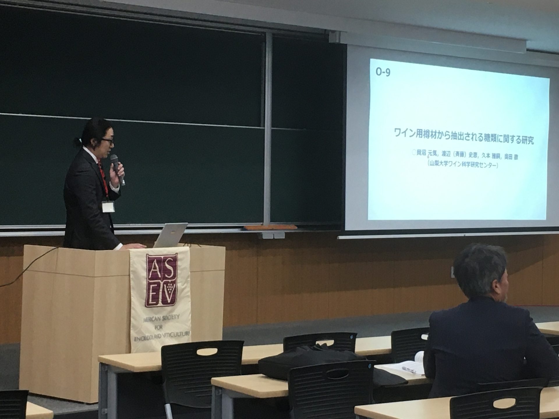 『この度は、このような賞を頂き大変光栄に存じます。今回の受賞は奥田先生、久本先生、斉藤先生の日頃のご指導のおかげです。この場を借りて感謝申し上げます。今後は、これまで以上に研究活動に精進し、「ワインの美味しさ」につながるよう努力いたします。』