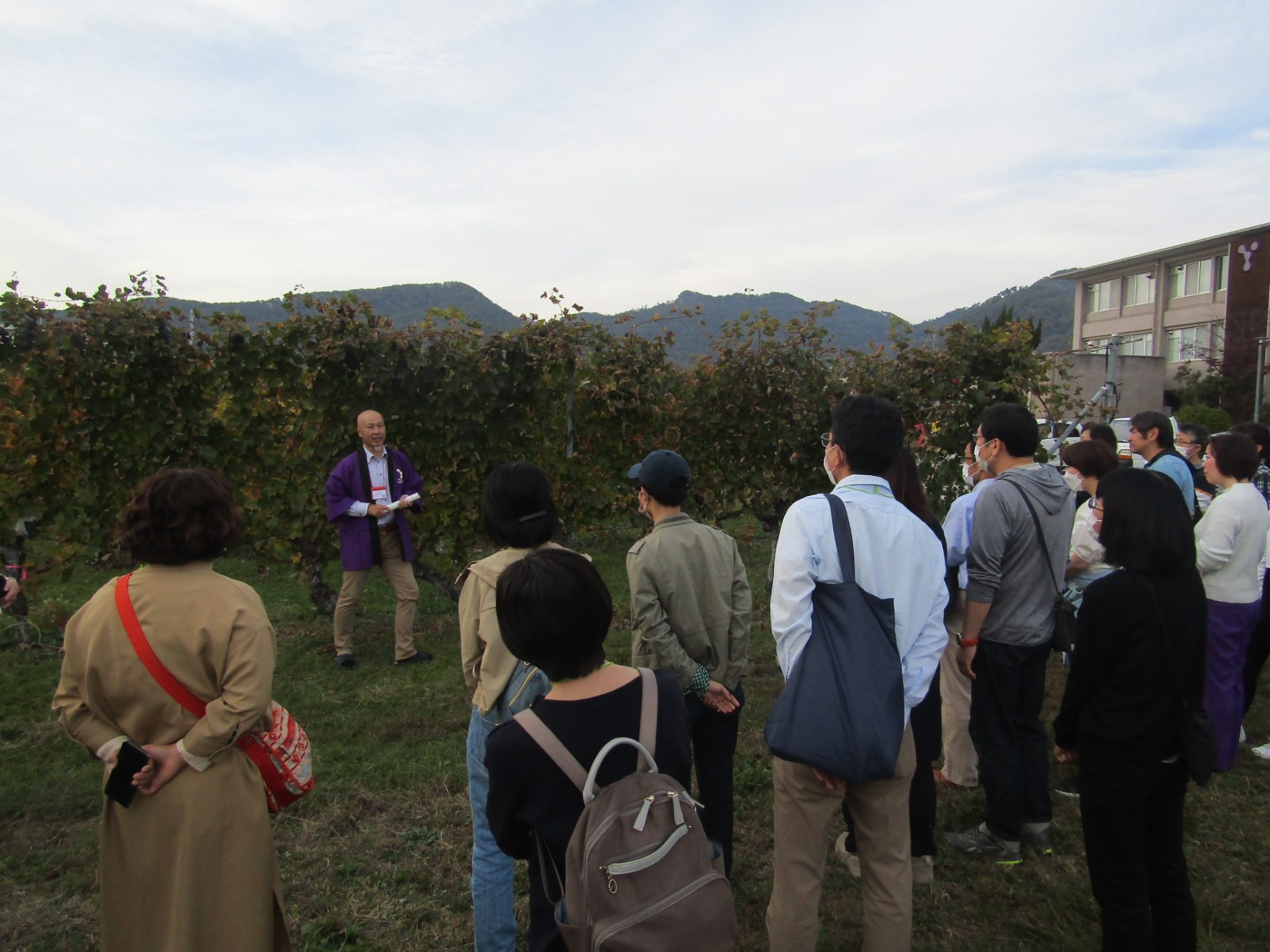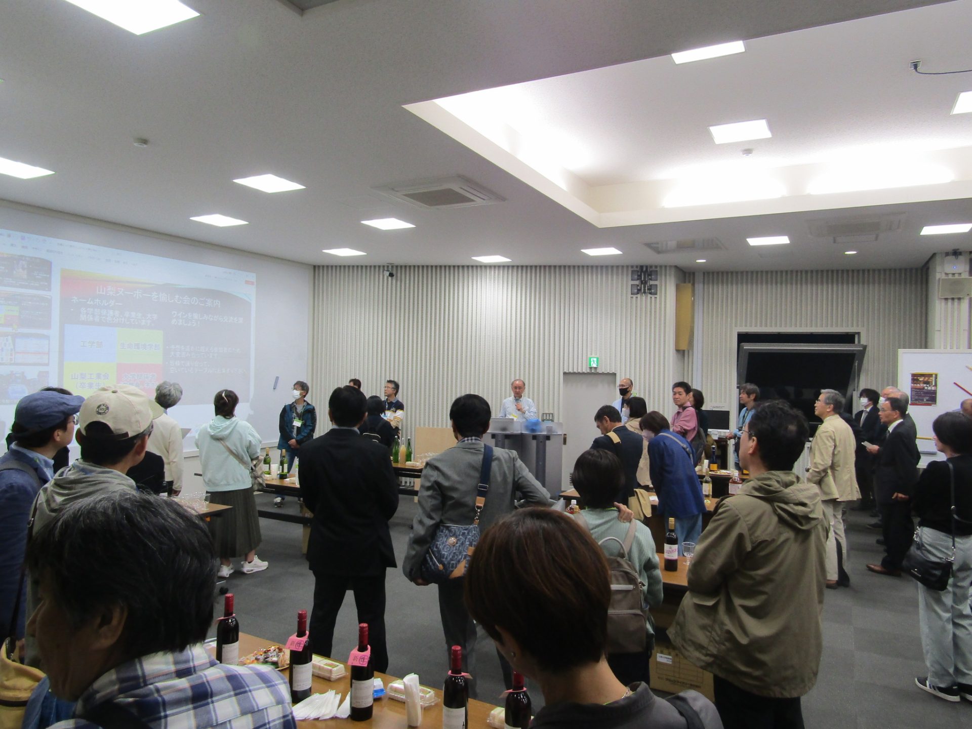 11/4(土)、生命環境学部と工学部との共催で、両学部の在校生の保護者の皆様を対象とした「ペアレンツデー」を開催しました。保護者の皆様にお子様のキャンパスライフの一端をご体験いただければと思い、甲府キャンパスの大学祭2日目に合わせた日程での開催となりました。生命環境学部は約70名の保護者の皆様にお越しいただき、両学部に関連した研究センターの見学や特別講演会、山梨ヌーボーを楽しむ会にご参加いただきました。