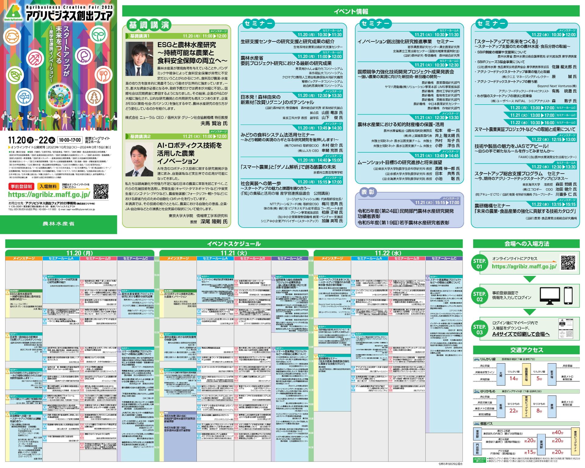 アグリビジネス創出フェア会場への入場には、参加登録が必要となりますので、詳細は下記サイトよりご確認ください。