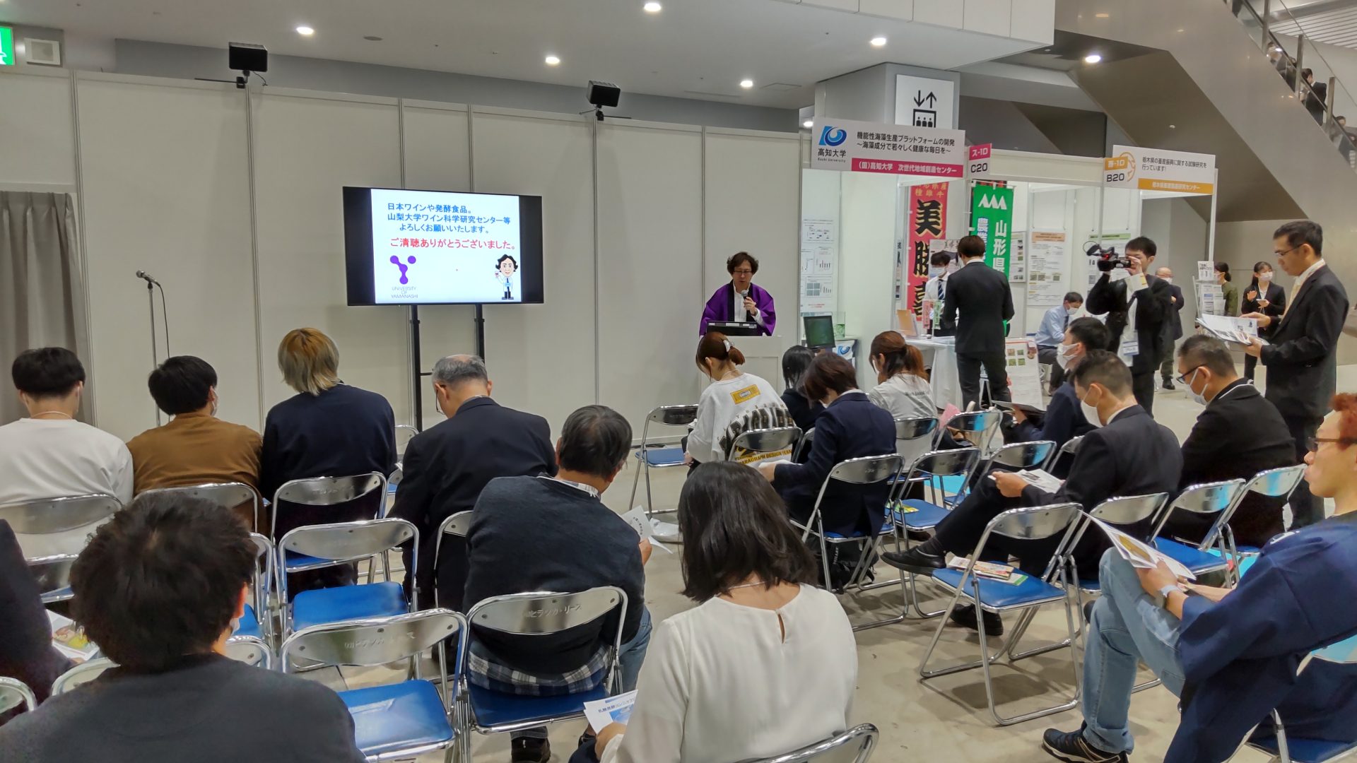 また、20日(月)には、「乳酸菌や酵母を用いた発酵食品の開発」と題して柳田教授がプレゼンテーションを行い、多くの方にお集まりいただきました。