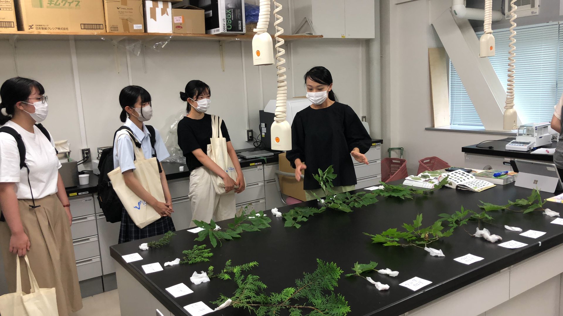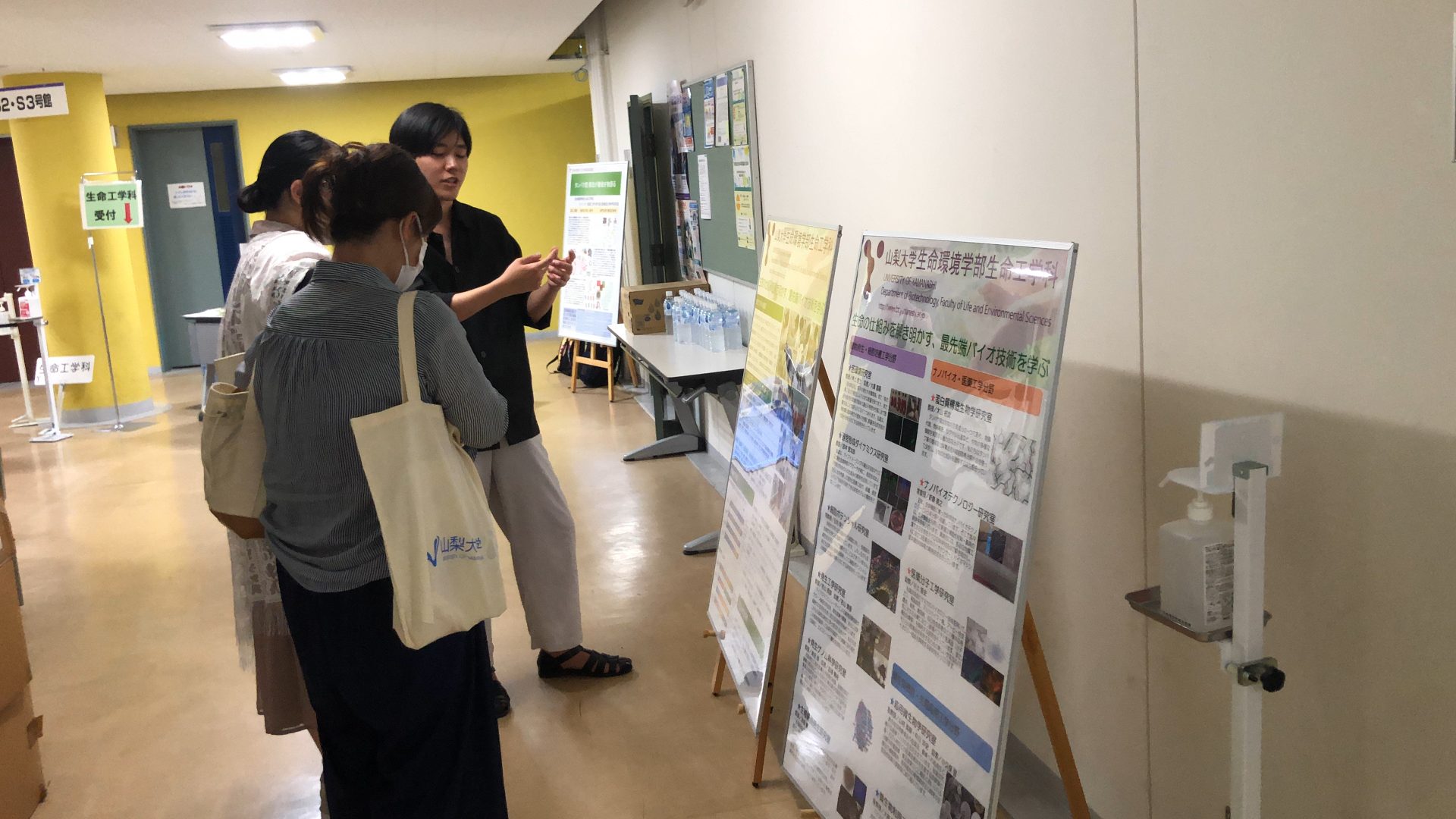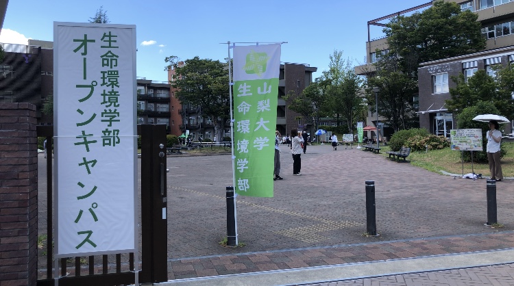 生命環境学部では、午前・午後の2部制で、各学科ごとに学科紹介、研究紹介、施設見学、ミニ実験、模擬講義、大学生活紹介、保護者向け説明等を行いました。 また今年度は、ご参加いただいたみなさまに喜んでいただけるよう、附属農場で収穫した果物や野菜、新たに作成した学部グッズ(多機能ボールペン)を配布しました。