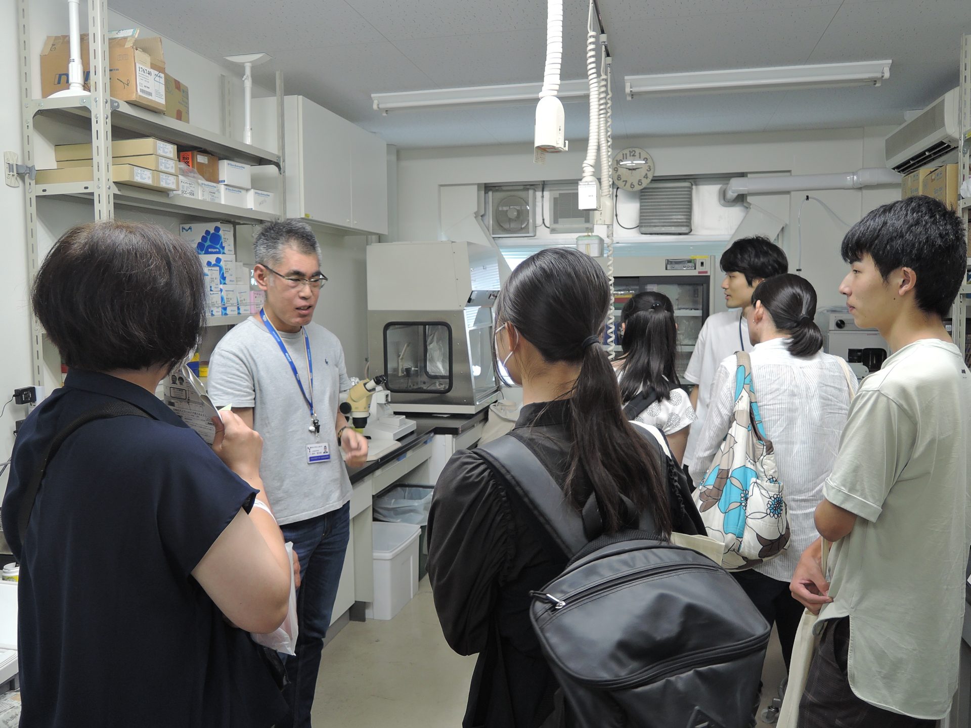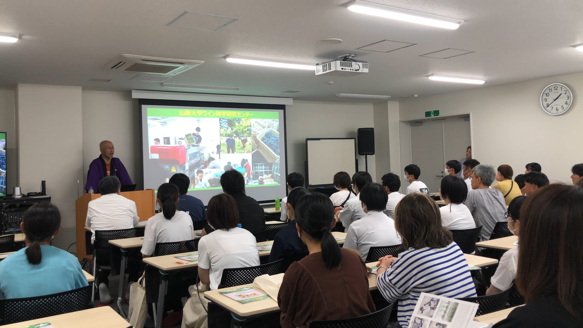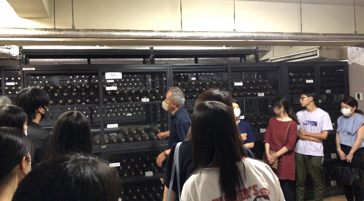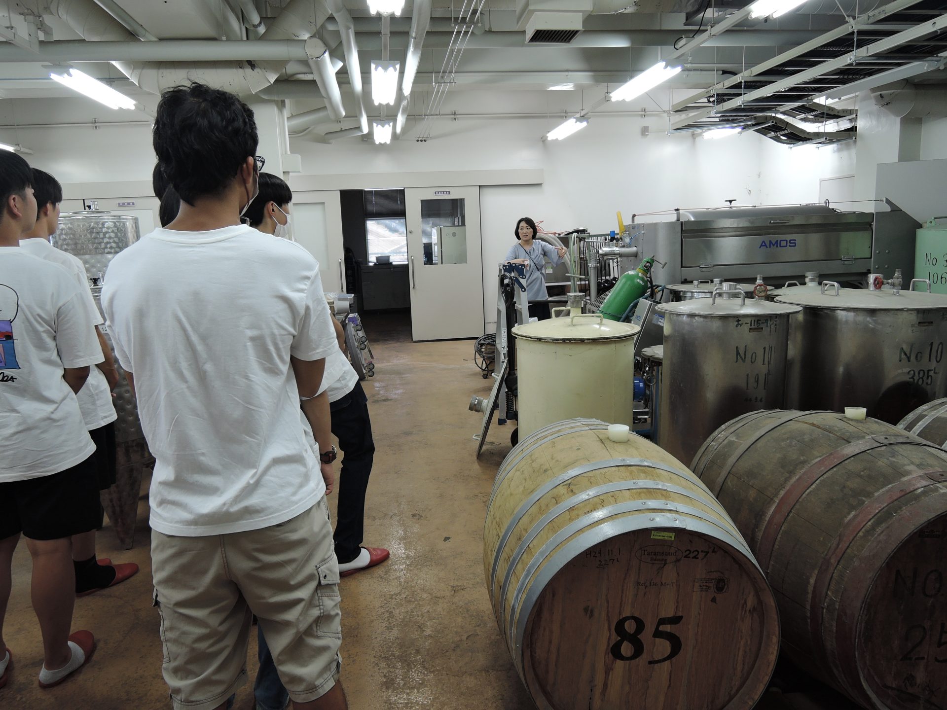 鈴木俊二ワイン科学研究センター長によるセンター案内の後、ワインのテイスティングによる官能評価を体験いただきました。