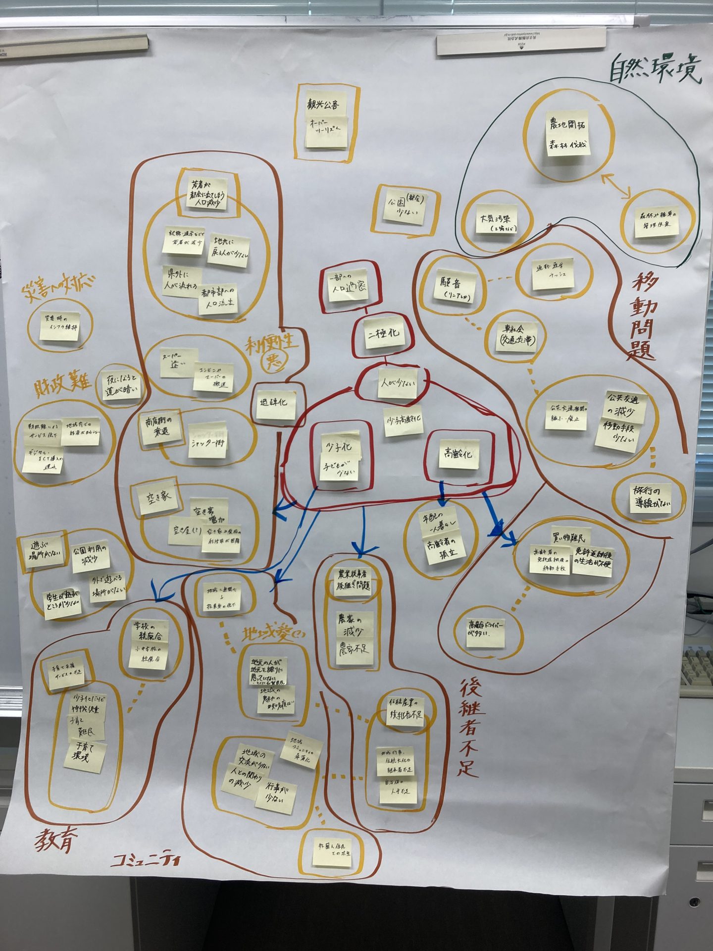 4月30日(水)の2回目の授業では、現地調査の前段階として、地域課題の本質を理解するためKJ法を用いたワークショップが開かれました。