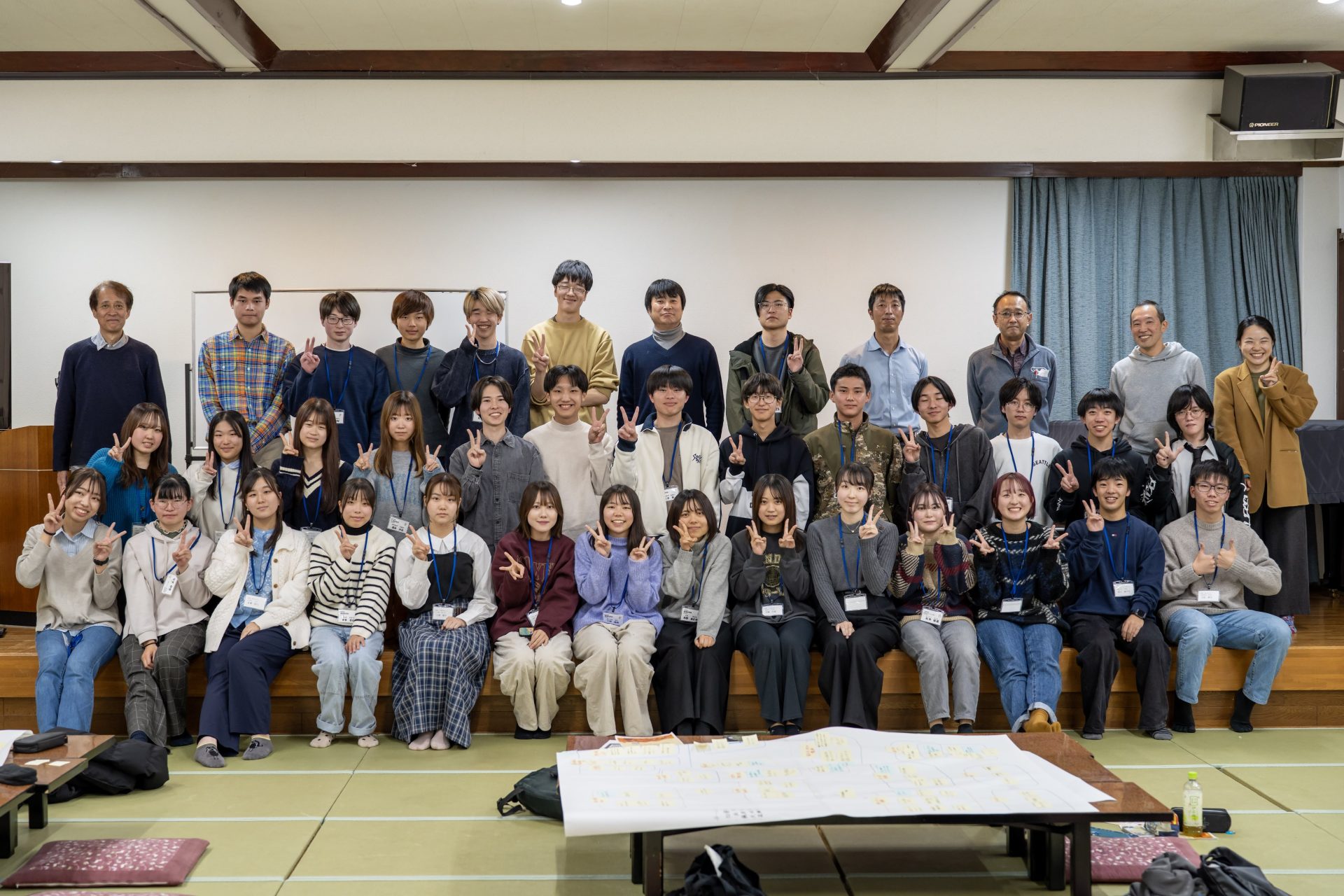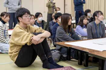 ワークショップ終了後は美味しいと評判の夕食を挟んで学生主体の交流会が開かれました。ゲームに興じる、屋外で星を眺める、布団のなかで雑談に花を咲かせるなど、夜が更けるまで学生同士で親睦を深めていました。