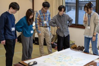 合宿中は天気に恵まれ、寒くもありましたが「まちあるき」には最適な散策日和となり、一泊二日の行程を何事もなく無事に終えることができました。学生たちからは、「解決のためのアイデアを自由に出し合いながら分類を進める方法を学び、課題解決のための考えを整理できるようになった」、「一見、まったく異なる地域課題に思えても類似性や因果関係などがあり、繋がっている課題が多いということを学んだ」などの感想が上がっており、学びの多いとても充実した合宿となりました。
